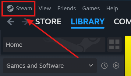 Nhấn vào Logo Steam góc trái trên cùng của giao diện.